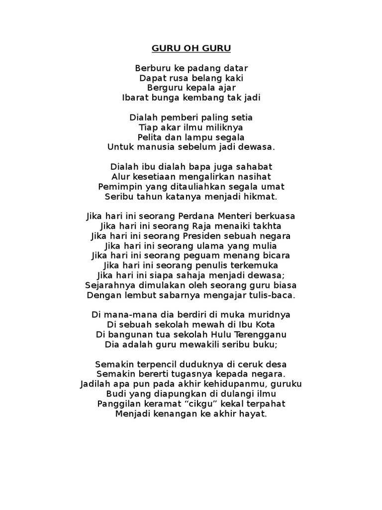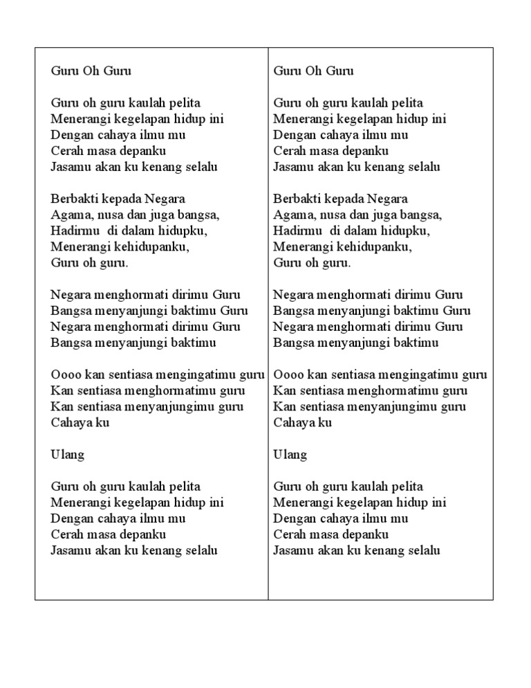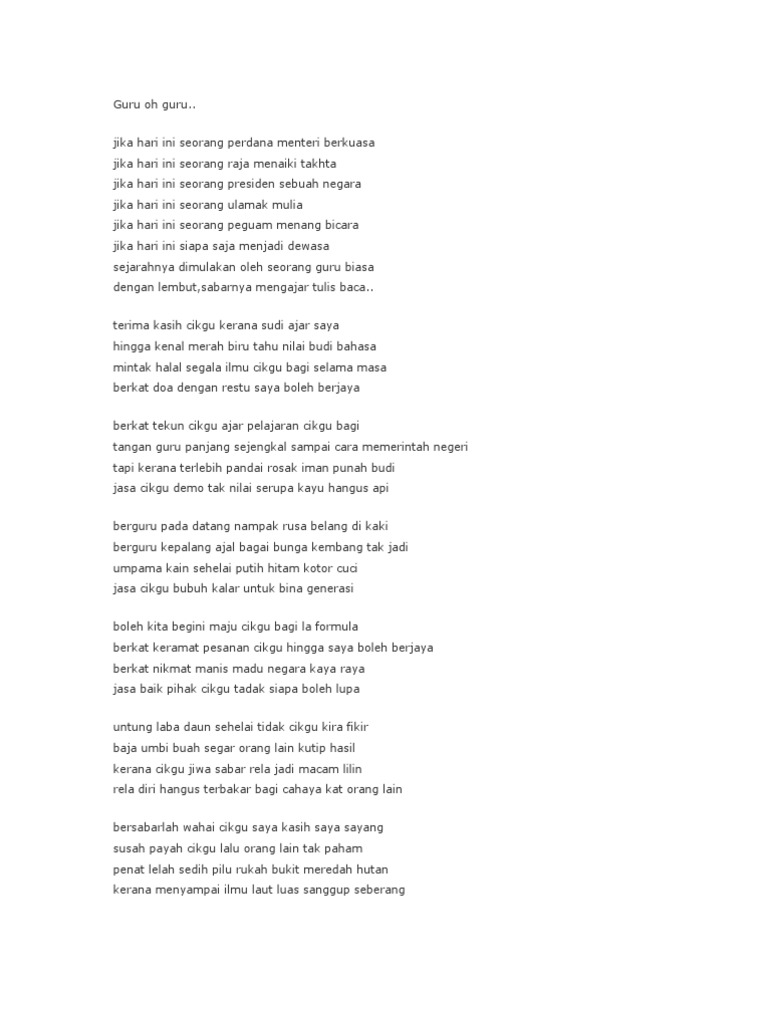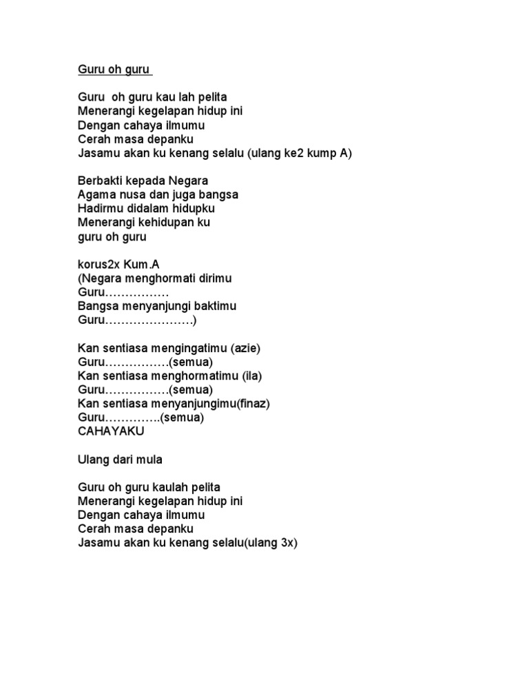 Lirik Lagu Guru Oh Guru